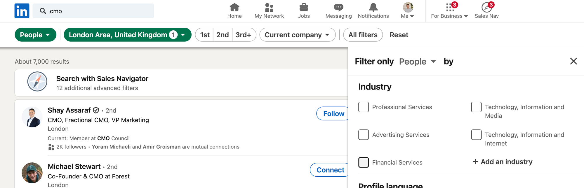 You can also filter industries and other things, depending on your ideal customer profile.